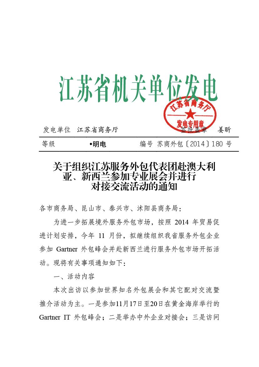 關(guān)于組織江蘇服務(wù)外包代表團(tuán)赴澳大利亞、新西蘭參加專業(yè)展會并進(jìn)行對接交流活動的通知