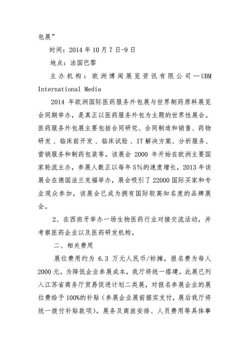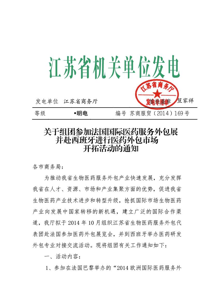 關(guān)于組團(tuán)參加法國國際醫(yī)藥服務(wù)外包展并赴西班牙進(jìn)行醫(yī)藥外包市場開拓活動的通知