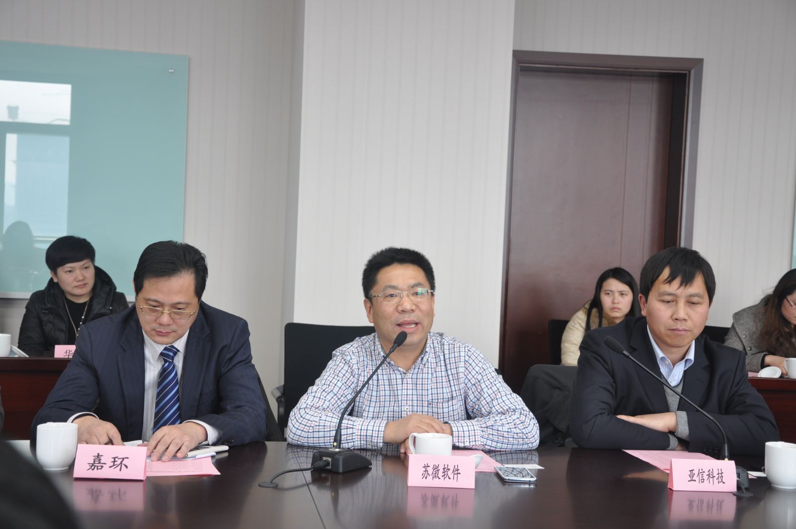 本次參加座談會的領(lǐng)導(dǎo)有南京市商務(wù)局汪振和局長、南京市商務(wù)局方芳副局長、南京市商務(wù)局服務(wù)貿(mào)易(服務(wù)外包)處唐蘇蘭處長、南京國際服務(wù)外包企業(yè)協(xié)會長代表楊杰先生、南京國際服務(wù)外包企業(yè)協(xié)會仇少明常務(wù)副會長。