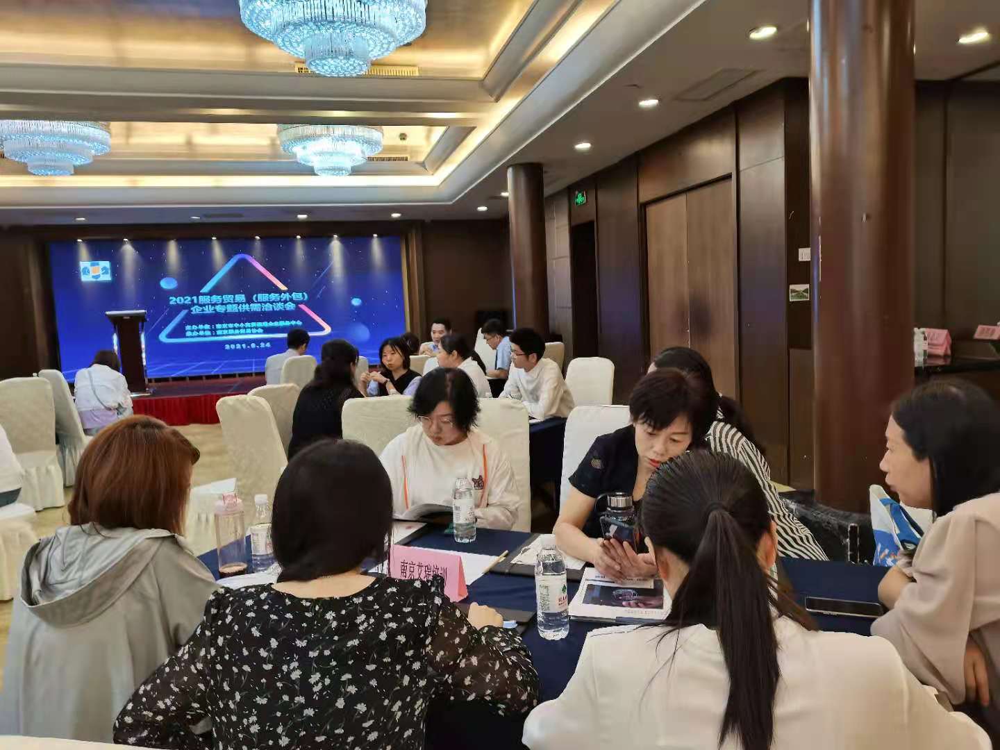 為搭建服務(wù)貿(mào)易(服務(wù)外包)企業(yè)供需對接交流平臺,深化上下游企業(yè)協(xié)同合作,推動我市服務(wù)貿(mào)易(服務(wù)外包)行業(yè)高質(zhì)量發(fā)展,6月24日上午,南京服務(wù)貿(mào)易協(xié)會會同南京市中小商貿(mào)流通企業(yè)服務(wù)中心在南京中江書香世家酒店舉辦服務(wù)貿(mào)易(服務(wù)外包)企業(yè)專題供需洽談會。